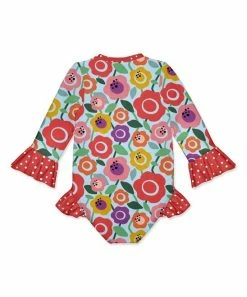 Wholesale โค๏ธ Outlet โญ Penelope Plumm Sky & Red Floral Ruffle Long-Sleeve One-Piece Rashguard – Toddler & ๐Ÿ‘ง Girls ๐Ÿ’ฏ ๐ŸŽ
