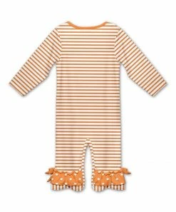 Wholesale โŒ› Discount ๐ŸŽ‰ Penelope Plumm Gold & Yellow Stripe Pumpkin Ruffle-Hem Playsuit – Toddler ๐Ÿ‘ โœจ