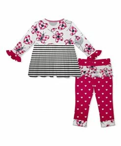 Wholesale โœจ Best Sale โœ”๏ธ Penelope Plumm White & Black Stripe Floral Babydoll Tunic & Red Hearts Leggings – Infant & Toddler ๐Ÿ‘ ๐Ÿ”ฅ