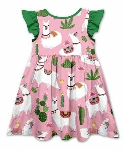 Wholesale โญ Best Sale โœ”๏ธ Penelope Plumm Pink & Green Cactus Llamas Angel-Sleeve ๐Ÿ‘— ๐Ÿ‘— Dress – ๐Ÿ‘ง Girls โŒ› ๐Ÿ˜€