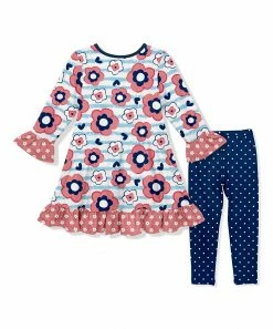 Wholesale ๐Ÿ›’ Budget โœจ Penelope Plumm Pink & Blue Stripe Floral Ruffle-Trim Shift ๐Ÿ‘— ๐Ÿ‘— Dress & Navy Leggings - Toddler & ๐Ÿ‘ง Girls โœจ โค๏ธ