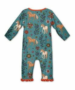 Wholesale ๐Ÿฅฐ Brand new โค๏ธ Penelope Plumm Dark Cyan Floral Horse Button Ruffle Playsuit ๐Ÿ˜ ๐Ÿ‘