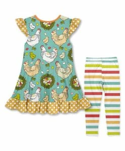 Wholesale ๐Ÿ”” Cheapest ๐Ÿ”” Penelope Plumm Light Teal Chicken Angel-Sleeve ๐Ÿ‘— ๐Ÿ‘— Dress & Green Stripe Leggings – Toddler & ๐Ÿ‘ง Girls ๐Ÿ˜ โœ”๏ธ