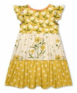 New ๐ Best Pirce โจ Penelope Plumm Yellow & Light Yellow Floral Tiered Angel-Sleeve ๐ ๐ Dress – Toddler & ๐ง Girls ๐งจ ๐
