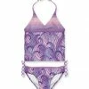Keep your kid ready for their next beach and pool day with this colorful rashguard tee with a bow-accent and matching swim bottom set.