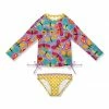 - Includes coral and blue stars and starfish bow rashguard tee and coral and blue starfish swim bottoms (two pieces total)