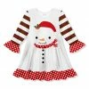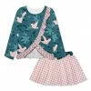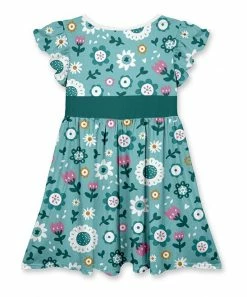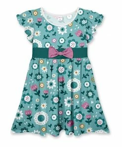 Fluttering sleeves add an angelic touch to this swingy dress that mixes prints for a playful look. Stretch fabric moves with active little ones to keep them comfy whatever the occasion.