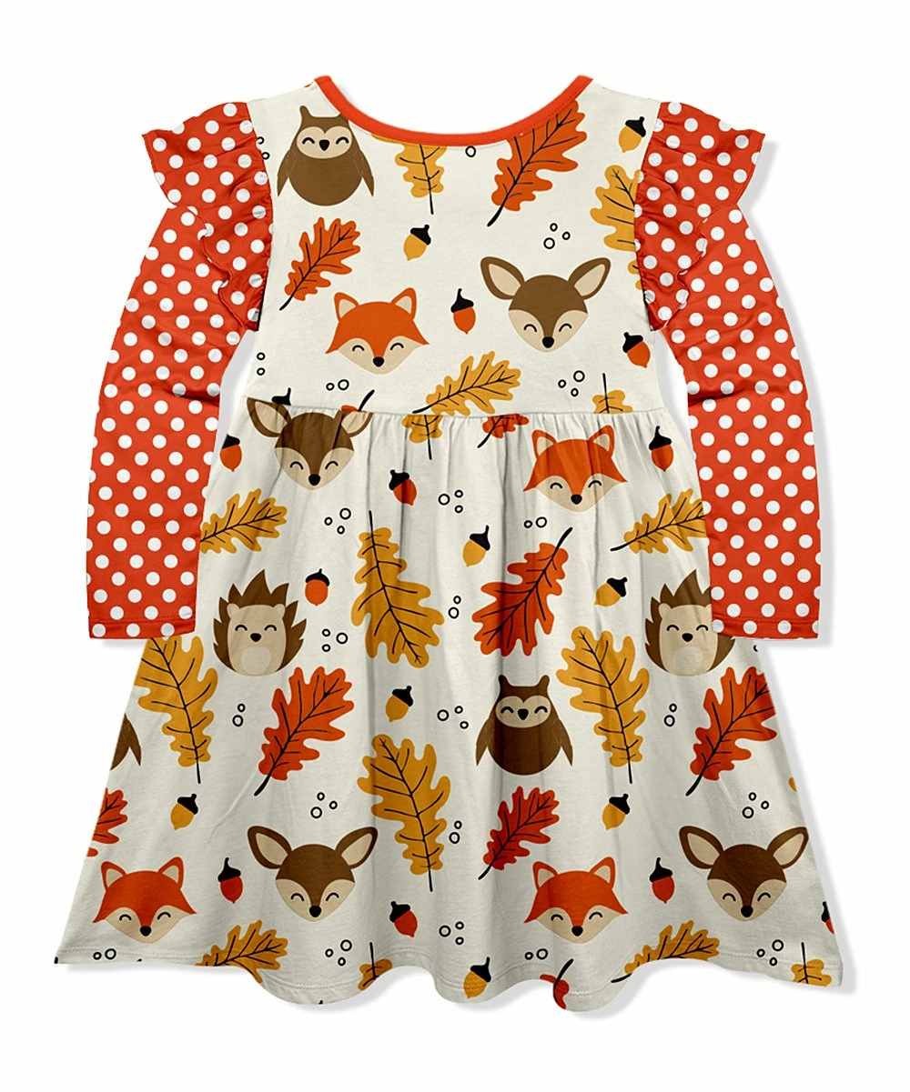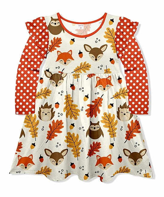 Designed to charm with a playful mixture of prints in seasonable hues, this stretch-blend dress features a flowy flared silhouette with long sleeves for just-right warmth.