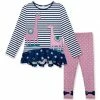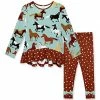 Enliven their wardrobe with this patterned set cut from stretchy fabric that includes a ruffle-hem tunic and versatile bow-accented leggings.
