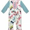 - Includes one blue and white polka dot and school animal cartoon characters angel-sleeve dress and one pair orange and white stripe leggings (two pieces total)