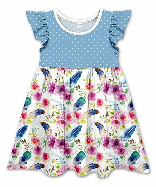 Frilly, fluttery angel sleeves add super-duper charm to this down home-themed dress crafted with vibrant colors and comfortable stretchy fabric.
