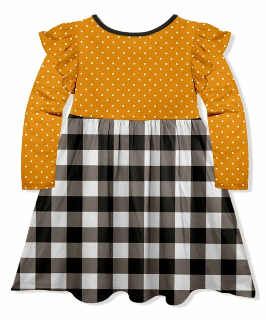 This playfully printed dress is crafted from stretch-enhanced fabric that provides comfy-cute style.