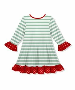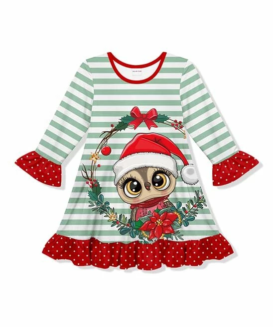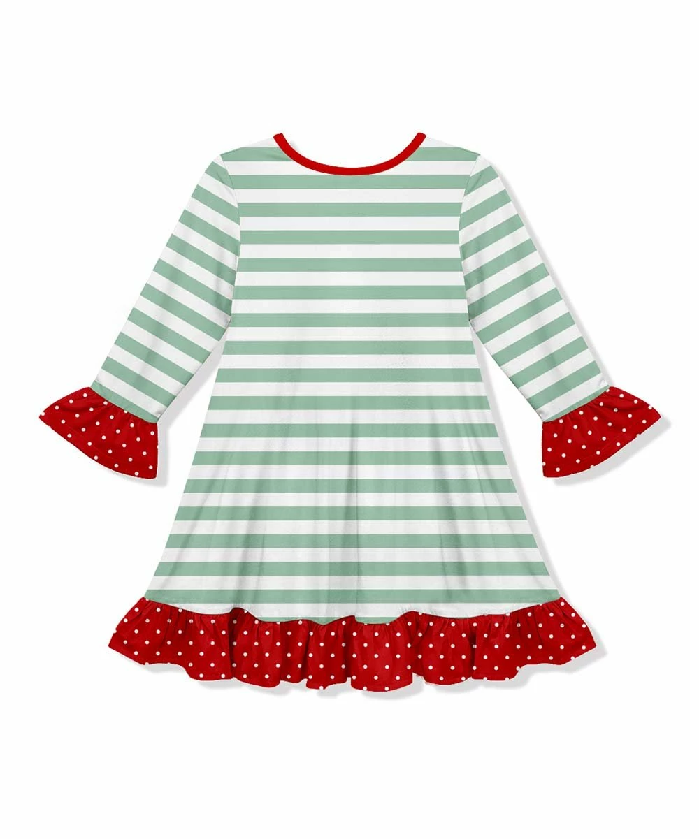 Outfit your little one in this stretch-enhanced dress featuring a flowy profile and ruffled hem and long sleeves.