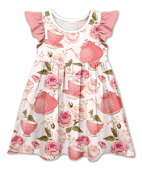 A playful floral print brings peppy style to this angel-sleeve dress.