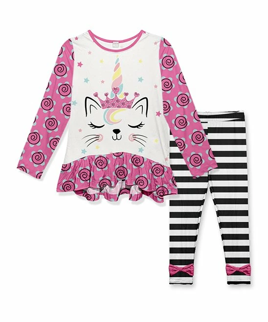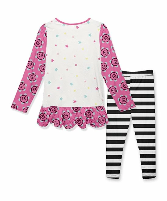 Put a smile on her face with this fun and fancy ruffle tunic and bow pant set. Featuring a mash up of whimsical prints and pretty patterns, these pieces will have her jumping for joy.