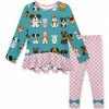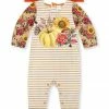 A charming combination of prints plus a sweet ruffle accent at the shoulder will have your little darling ready for the day.