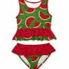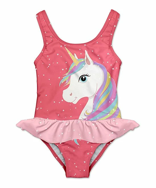 Outfit your little one for fun in the sun in this one-piece swimsuit, featuring tank-style straps and a bouncy ruffle at the hips. The lightweight fabric offers plenty of stretch that helps it stay comfortably in place through all-day water play.
