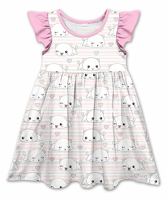 Elevate your youngster’s everyday outfits with the playful print and the textured angel sleeves of this billowy dress.