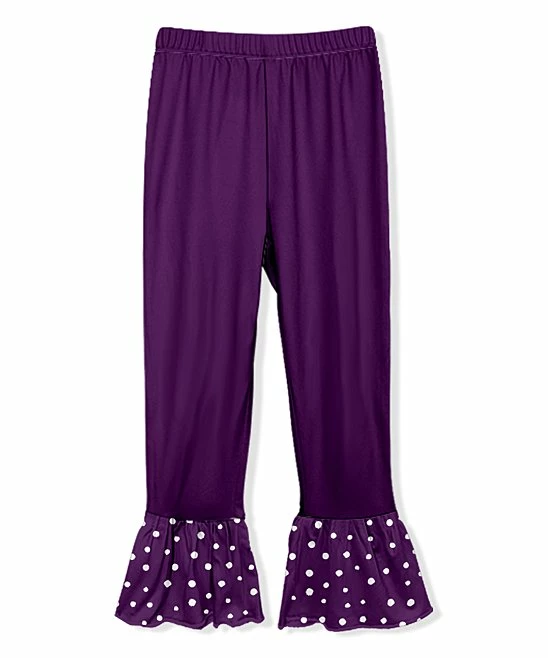 Keep your girly-girl comfortable throughout the day with these stretch-blended leggings boasting a polka dot ruffle around the ankle for frilly fun.