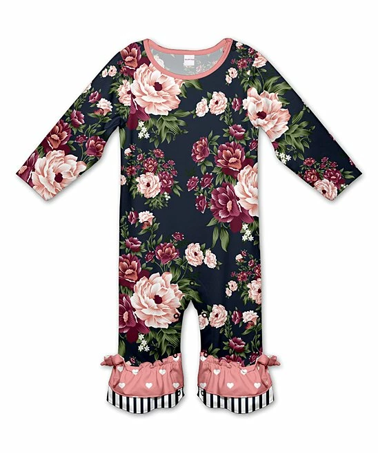 Your little one will be warm and comfy in this long-sleeved playsuit embellished with a vibrant print and ruffled trim. Snap closures make changing time a breeze.