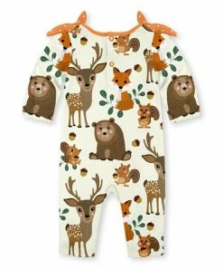 Sweet little knots finished the shoulders of this soft and stretch-enhanced playsuit that douses your little one in a charming print.