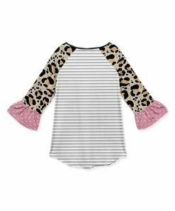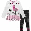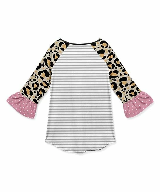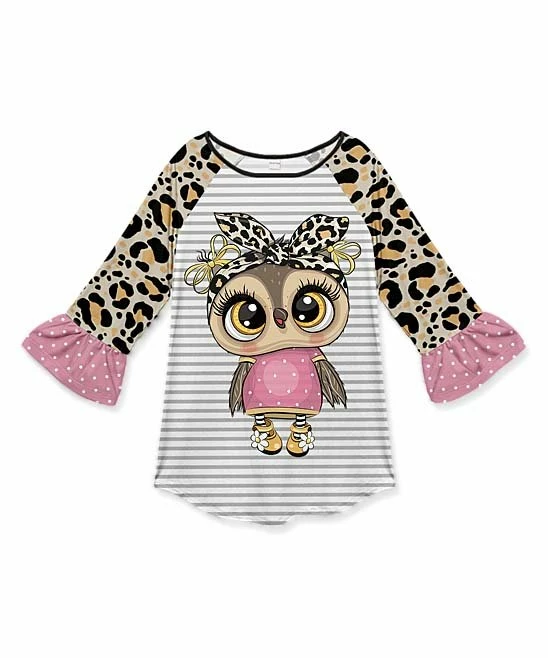 Playful patterns and a bold owl design enliven your little one’s look in this raglan tunic fashioned with ruffled detail along the cuffs and plenty of stretch for a feel-good fit.