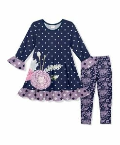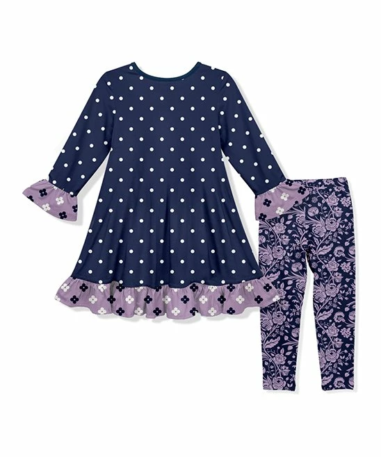 Dress your little one up to impress in this set that features a polka dot shift dress and plaid pants for playful appeal.