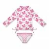 - Includes navy and cream stripe butterfly trumpet-sleeve raglan tunic and blush and blue butterfly flare pants (two pieces total)