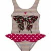 Active girls can hit the beach without a care in the world wearing this print-splashed set that’s rated UPF 50+ for protection from the sun’s harsh rays. Short sleeves and a high neck offer extra coverage and comfort.