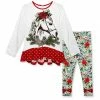 - Includes pink floral bow rashguard tee and pink dots swim bottoms (two pieces total)