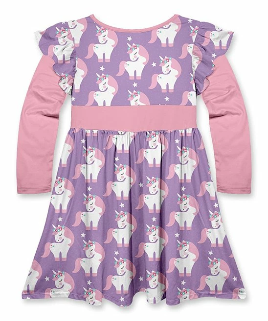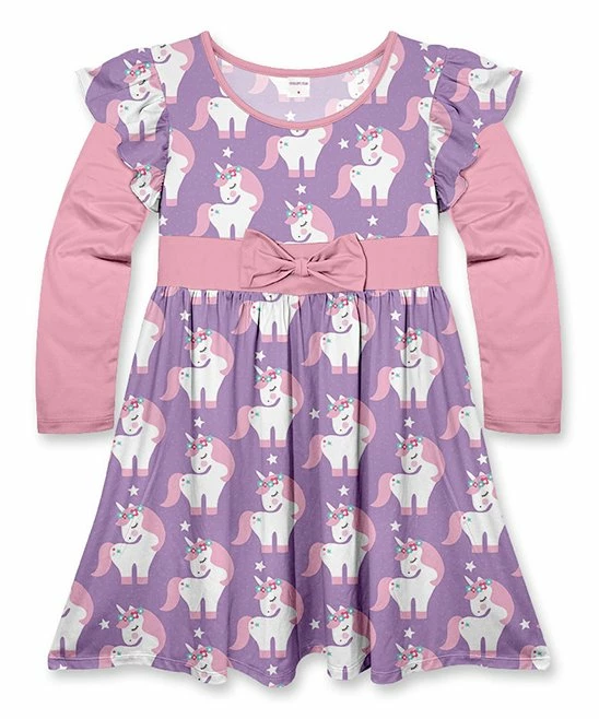 A sweet bow accent complements the whimsical unicorn design of this dress for a simply darling look.
