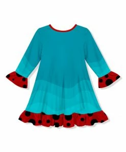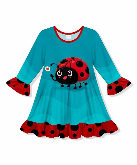 Have her looking sweet as can be for school days and play dates with this comfy shift dress trimmed in ruffles and emblazoned with a colorful ladybug design for added charm.