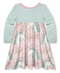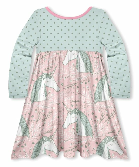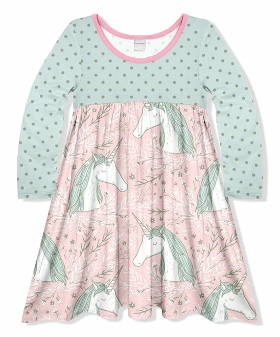 Your little one will love the twirl-friendly silhouette of this babydoll dress adorned with two patterns for eclectic style.