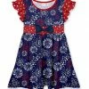 Sweet little knots finished the shoulders of this soft and stretch-enhanced playsuit that douses your little one in a charming print.