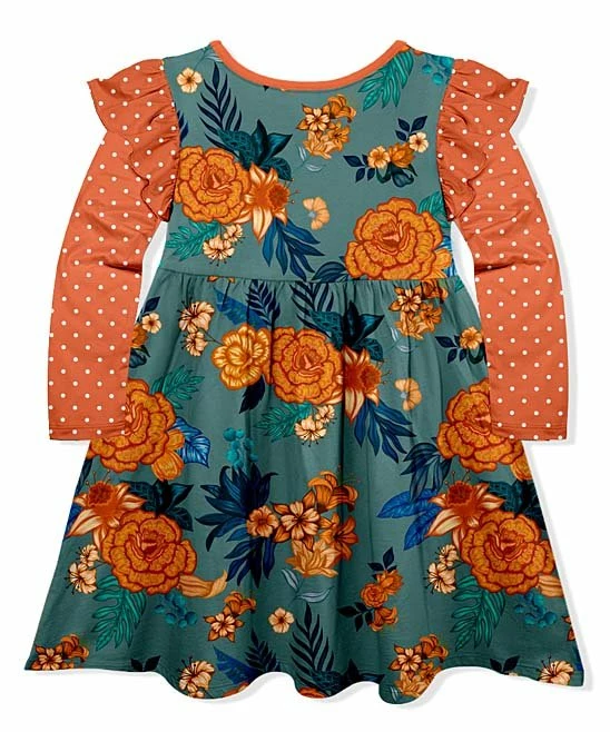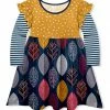 She can dance and play the day away in this stretch-touched angel-sleeve dress boasting long sleeves for coverage and seasonal-inspired prints that are worth a smile.