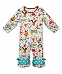 Adorn your active little one in this fun woodland-print playsuit fashioned with soft and flexible fabric and adorable ruffle hem.