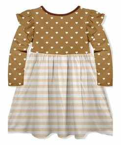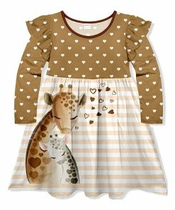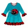 Ruffle accents add cheerful detail to this sprightly patterned dress blended with a hint of stretch for carefree twirling.