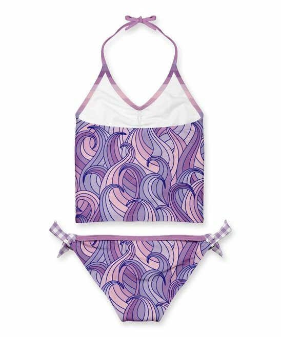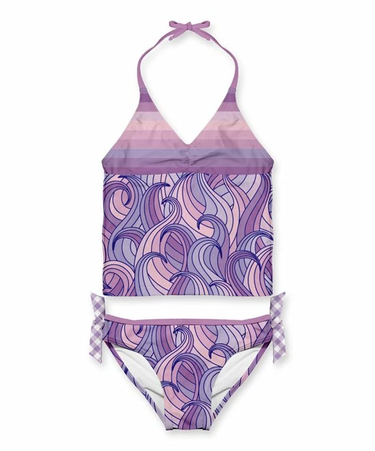 - Includes purple stripe tails tankini top and purple stripe tails swim bottoms (two pieces total)