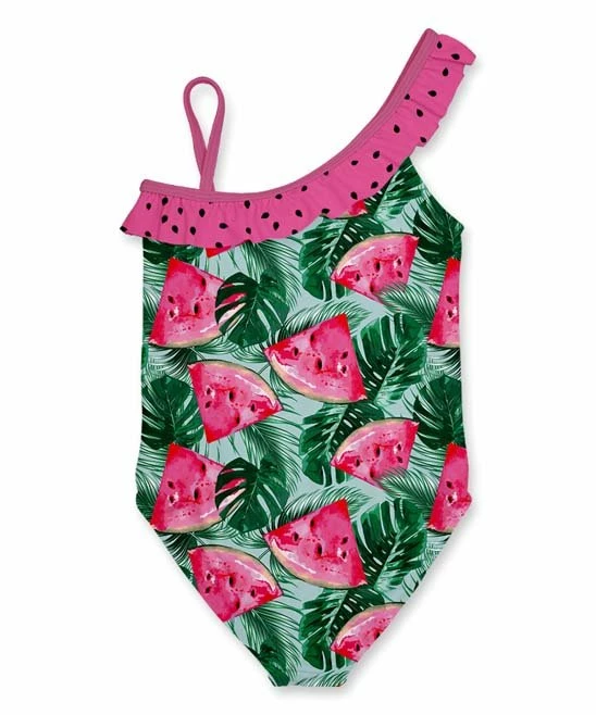 Bolster your youngsterโs essential swimming attire with this charming one-piece that flaunts an asymmetrical silhouette finished with a playful pattern theyโll love to wear.