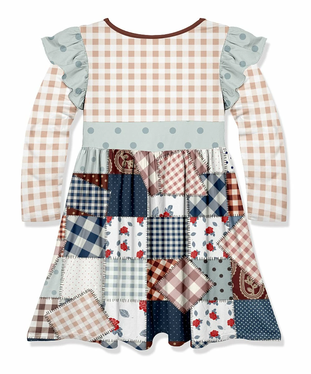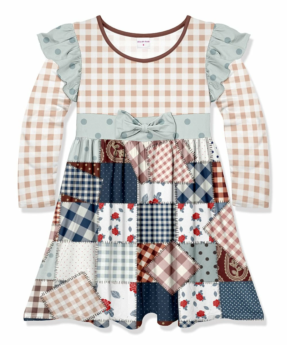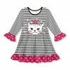 A charming combination of prints plus a sweet ruffle accent at the shoulder will have your little darling ready for the day.