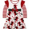 This flutter-sleeve dress features a fun print and the extended coverage of long-sleeves. A hint of stretch adds comfort throughout.