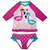 Sweeten up their water-ready look with this tankini set that shows off a frilly square neck top and matching skirted bottoms. Fabric with a UPF rating of 50+ shields their skin from the sun.
