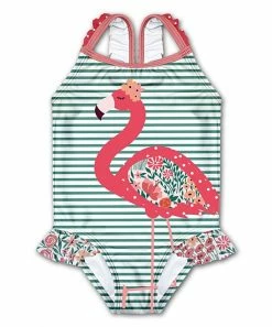 Fanciful ruffles and a colorful print make this darling one-piece a must-have for seaside style.