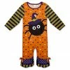 Playfully patterned ruffled playsuit crafted with stretchy fabric and convenient bottom snaps.