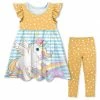 Sweet dress featuring a colorful kitty quartet and comfy bishop sleeves.