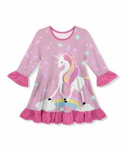 Highlighted by ruffles at the cuffs and hem, this swingy shift dress invites your little one to twirl through her day in comfort.
