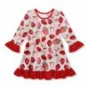 The print takes center stage on this comfortable, stretch-infused dress while a ruffle finishes the sleeves and the hemline.