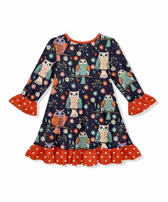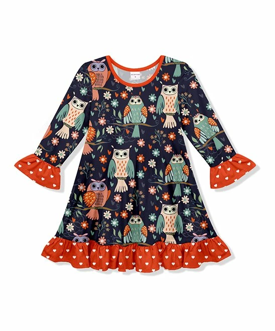 She’ll look absolutely adorable at parties or playdates in this festive dress that boasts a bright pattern and sweet ruffled trim.