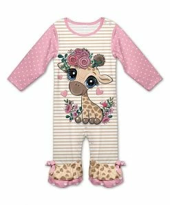 A whimsical print and ruffles at the ankles lend sweet style to this comfy stretch-touched playsuit featuring long sleeves for added coverage.