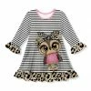 Your cutie will be playdate-ready in this print-splashed shift dress crafted from a stretchy blend and boasting frilly ruffles at the sleeves and hem.